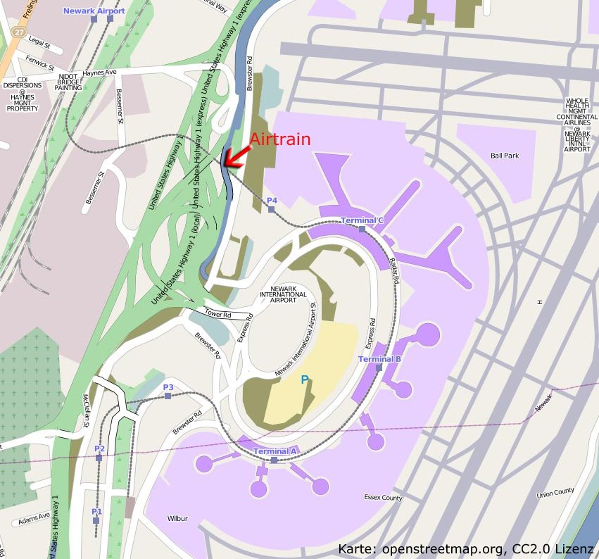Airport). Der Transfer zum NJ Transit Bahnhof (s.u.) kostet pro